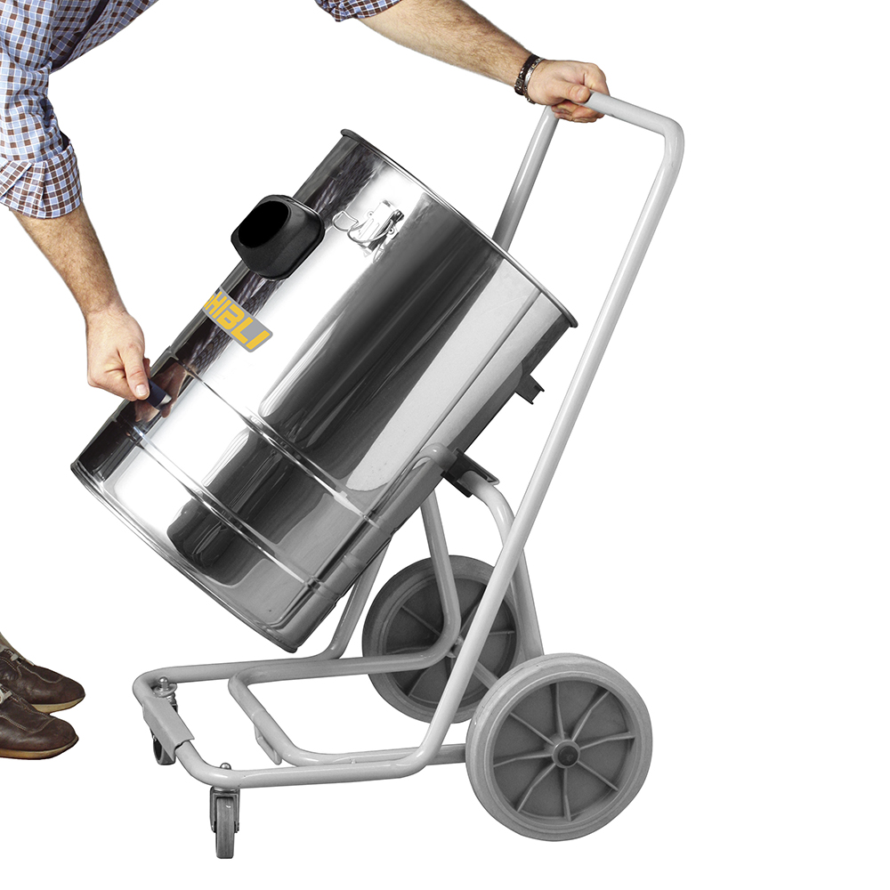 Aspirateur/liquide tracté, de grande capacité, doté de réservoir en acier inox et de kit antistatique. Deux moteurs commandables individuellement. La version CBM est dotée d'enveloppe avec capacité de basculement total du fût. Chariot robuste en métal. Sac en papier avec bouchon de fermeture, filtre supplémentaire nylon et entretoise porte-sac en option. Filtres à cartouche (normal et HEPA) en option.