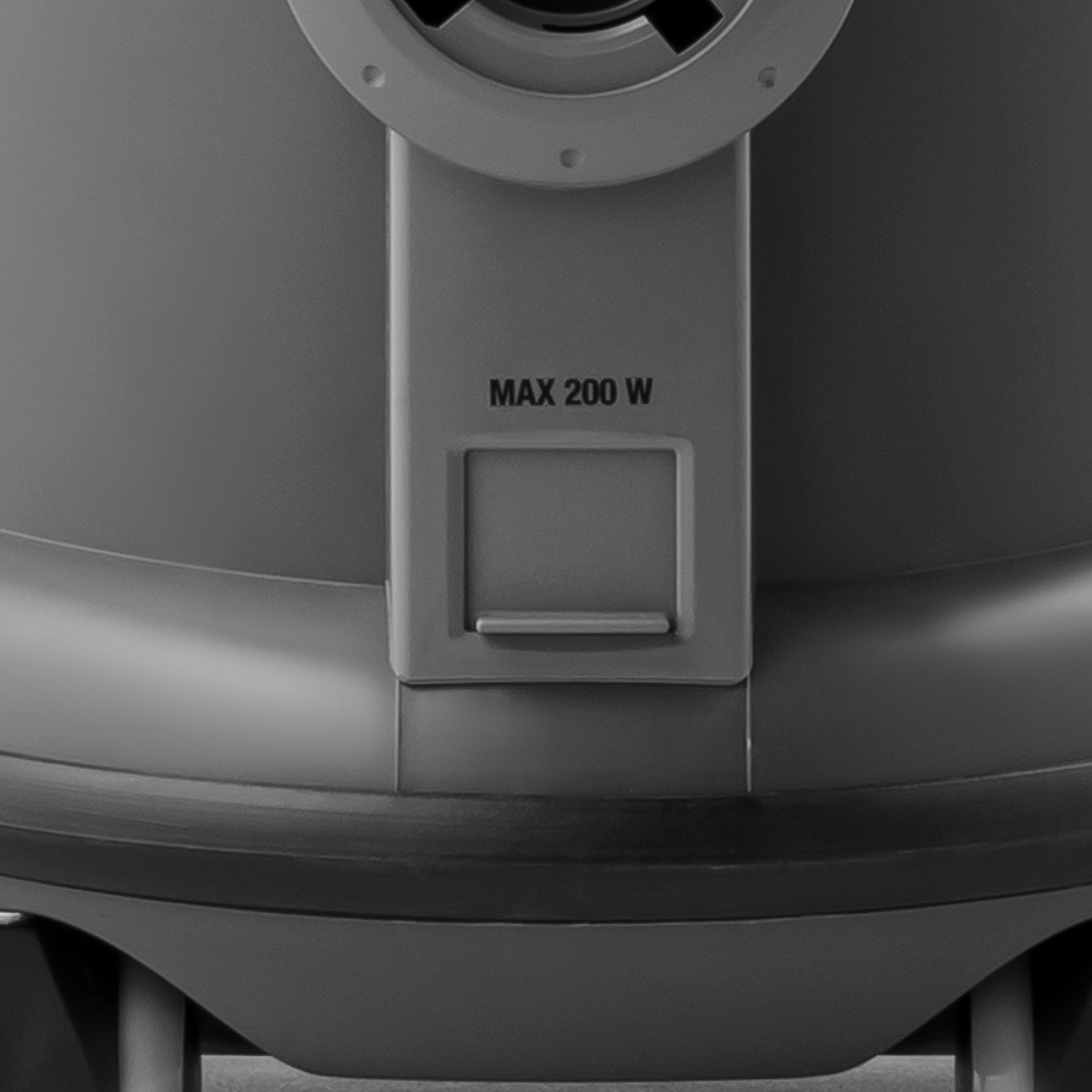 Aspirapolvere potente e versatile realizzato con materiali plastici rigenerati. Questo modello è provvisto di: vano interno e filtri di grandi dimensioni, tubo telescopico e cavo sganciabile di serie, filtrazione aria di scarico, indicazione luminosa di filtro intasato, sedi per riporre gli accessori d’uso comune, presa per elettrospazzola e guarnizione paracolpi. Ottima maneggevolezza e stabilità garantite dalle ruote anteriori pivottanti e da quelle posteriori fisse e di grande diametro.