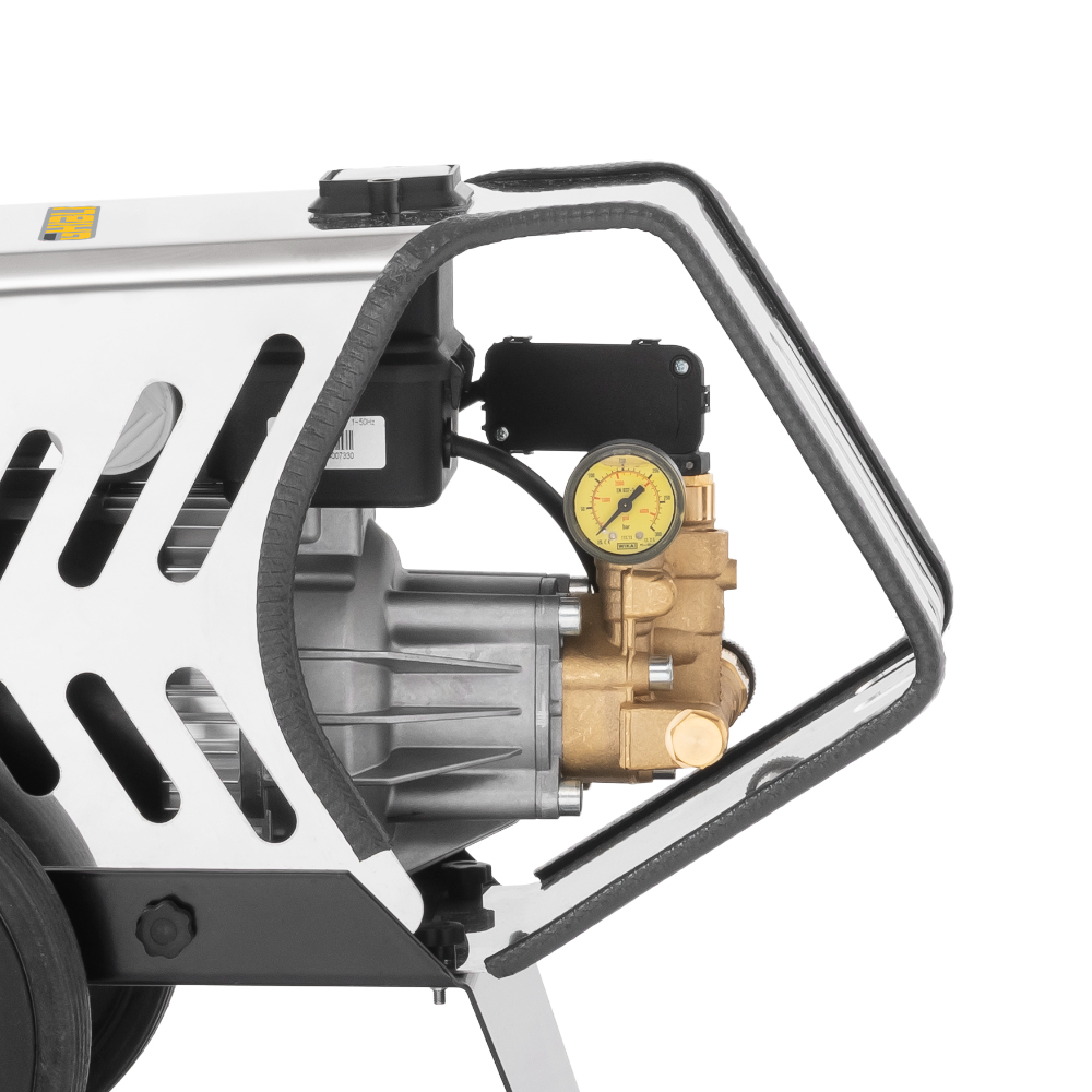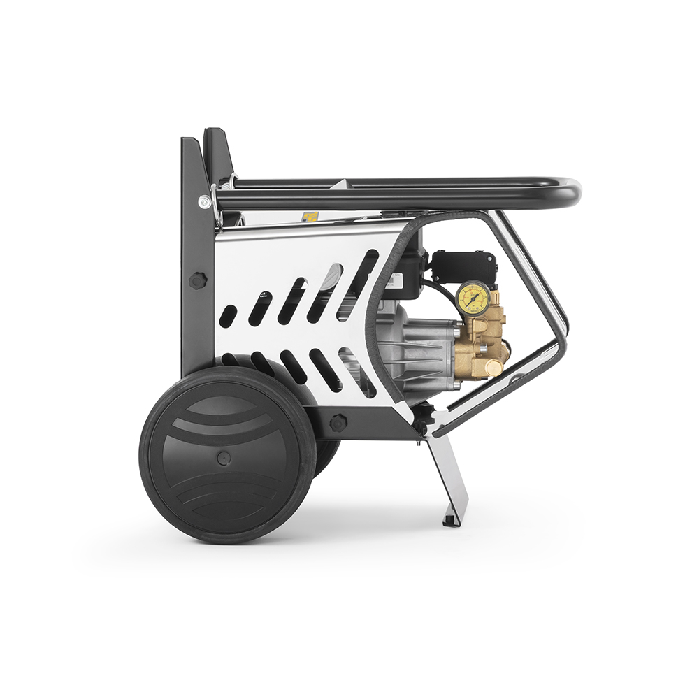 GPW 120.9 SP C è l’idropulitrice semi-professionale ad acqua fredda che vanta efficienza e performance di alto livello grazie a una pressione d’esercizio di 120 bar e una portata d’acqua di 9 l/min. Il telaio robusto e la scocca in acciaio inox rendono la macchina solida e resistente, mentre il sistema TS (Total Stop), che arresta il motore e blocca immediatamente l’erogazione dell’acqua quando viene rilasciata la leva di azionamento presente sulla pistola, assicura sicurezza, affidabilità e risparmio energetico. Piccola, compatta e semplice da utilizzare, GPW 120.9 SP C risulta estremamente leggera e maneggevole grazie al pratico maniglione e alle grandi ruote posteriori che permettono all’operatore di muovere la macchina in modo semplice e veloce. GPW 120.9 SP C è perfetta sia per la pulizia quotidiana di pavimenti, pareti, facciate e aree esterne che per l’utilizzo privato in ambienti domestici.