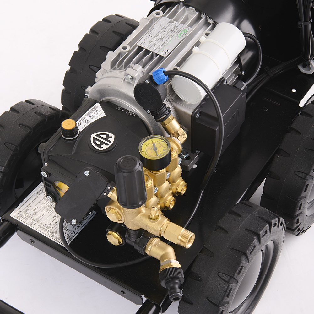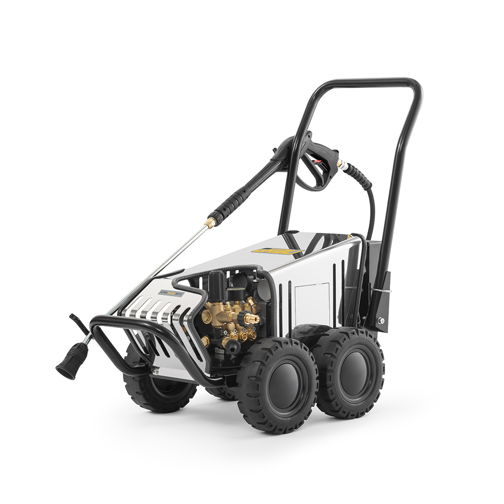 GPW 150.8 SP C è l’idropulitrice professionale ad acqua fredda che, grazie ai suoi 150 bar di pressione d’esercizio e 8 l/min di portata d’acqua, è in grado di garantire risultati di pulizia eccellenti. GPW 150.8 SP C risulta pratica, maneggevole, semplice da utilizzare ed è equipaggiata con una pompa professionale a 3 pistoni in ceramica con sistema biella/manovella e testata in ottone che permette di regolare la pressione e anche l’aspirazione del detergente. Estremamente robusta grazie al telaio resistente e alla scocca in acciaio inox, questa macchina è dotata del sistema TDTS, Time Delayed Total Stop, che la rende ancora più sicura arrestando il motore dopo 12 secondi dal rilascio della leva di azionamento presente sulla pistola. GPW 150.8 SP C è l’idropulitrice ideale per la pulizia di pavimenti, pareti, facciate, macchinari, attrezzature industriali e per la rimozione di residui solidi, come polvere o detriti.