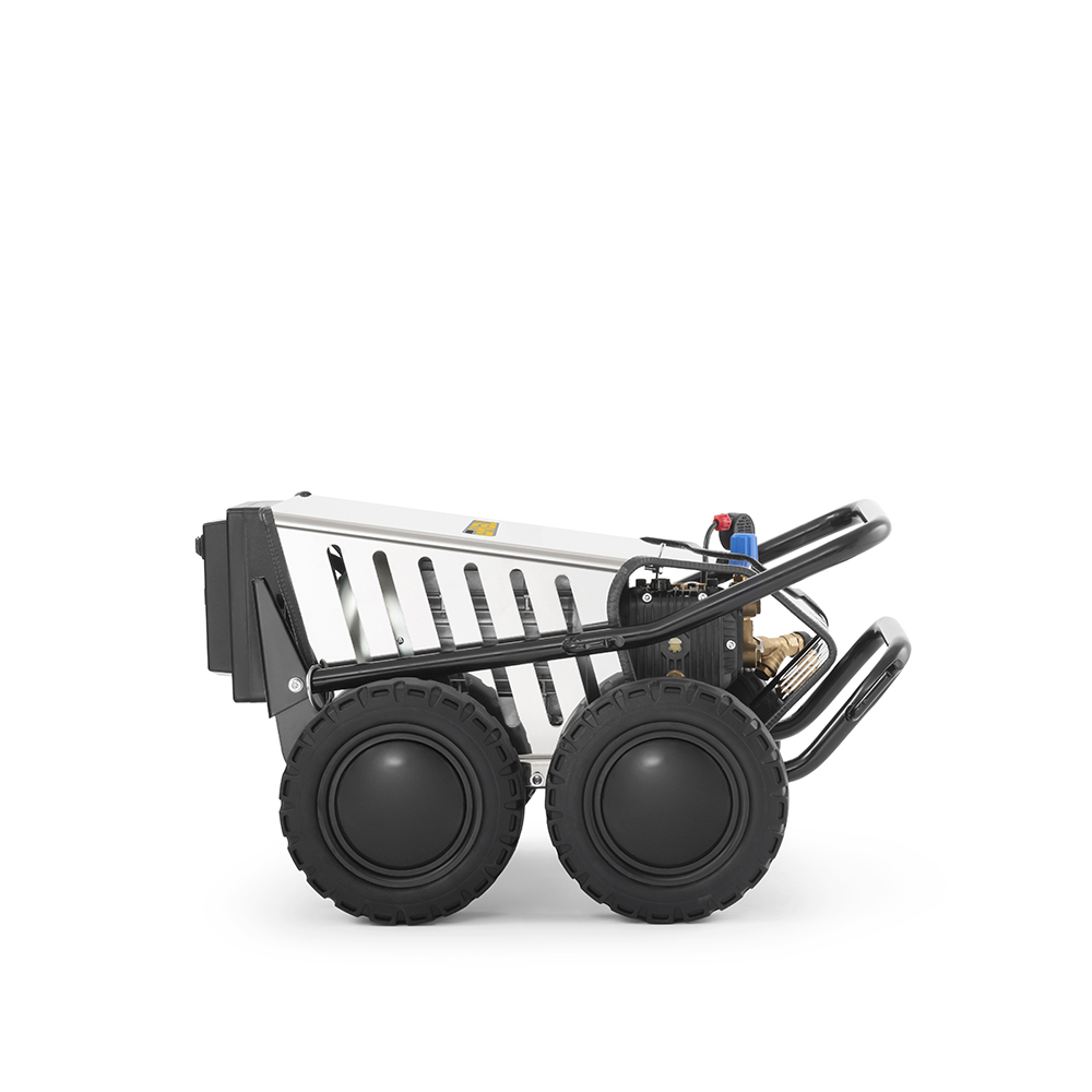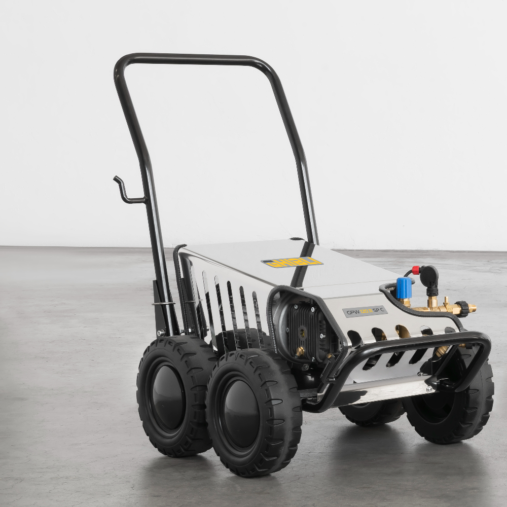 GPW 120.11 SP C è l’idropulitrice professionale ad acqua fredda pensata per le operazioni di pulizia più gravose ed è utilizzata per lavorare in ambienti dove sono necessarie prestazioni elevate per ottenere risultati eccellenti. La pompa professionale a 3 pistoni in ceramica con sistema biella/manovella e testata in ottone permette di regolare facilmente la pressione erogata e anche l’aspirazione del detergente. Il sistema STS, Smart Total Stop, rende GPW 120.11 SP C una macchina estremamente sicura: arresta il motore dopo 12 secondi dal rilascio della leva di azionamento presente sulla pistola o in caso di surriscaldamento, segnala la presenza di micro-perdite o la mancanza d’acqua, spegne la macchina dopo circa un’ora di stand-by. GPW 120.11 SP C è robusta, grazie al resistente telaio e alla scocca in acciaio inox, e, al contempo, maneggevole grazie al pratico maniglione e alle grandi ruote che permettono all’operatore di muovere la macchina in modo semplice.